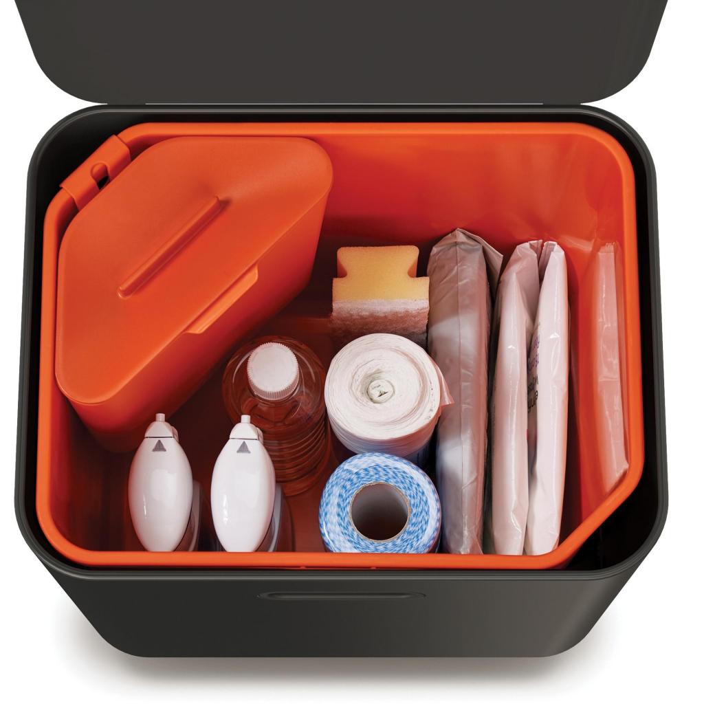 - Det prisvindende design kombinerer plads til restaffald, genbrug og bioaffald i ét kompakt og overskueligt system.