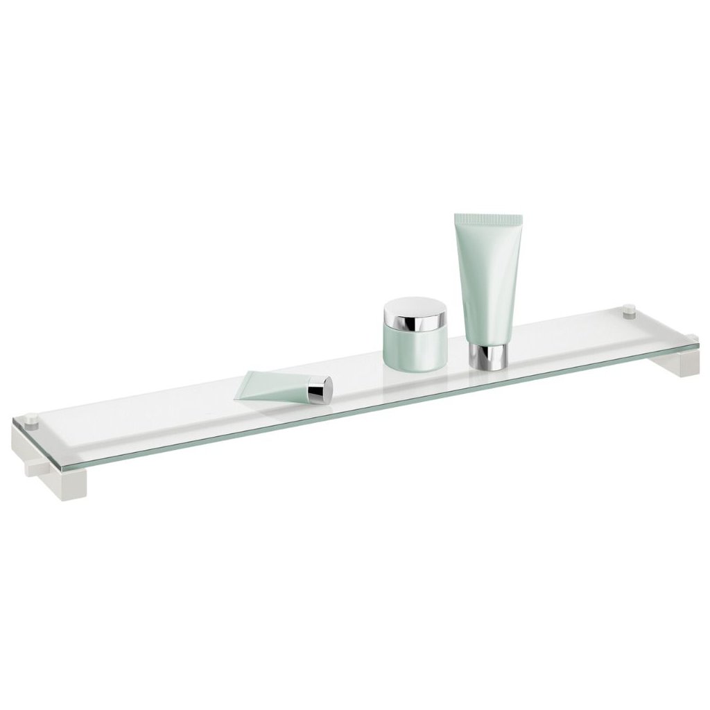 Badeværelseshylde CARVO 66 cm, hvid, rustfrit stål/glas, Zack