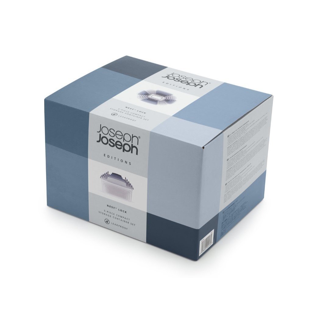 I dette Nest™ Lock 5-sæt fra Joseph Joseph finder du fem stabelbare beholdere med en kapacitet på 0,23 / 0,54 / 1,1 / 1,85 / 3 l. De praktiske beholdere har en silikoneforsegling, et farveparret låg, tåler mikroovn og opvaskemaskine og er BPA-fri. Vi leverer i en smuk gaveæske.
