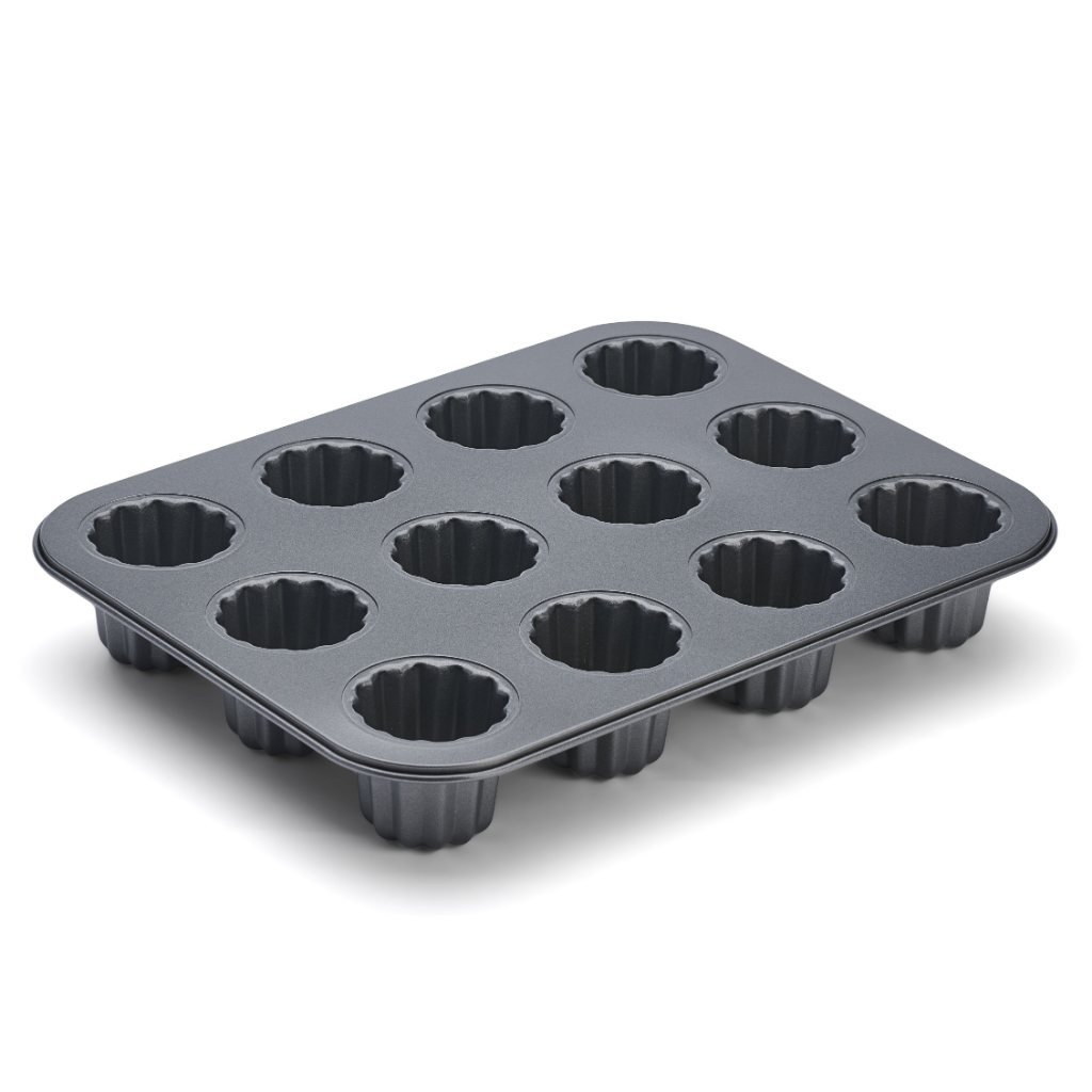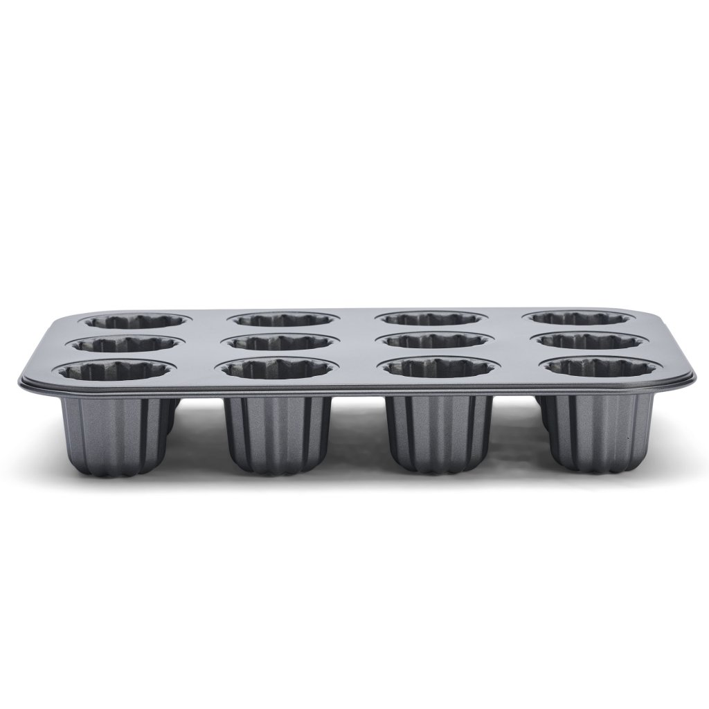 - formen til 12 cannelés lavet af non-stick stål er designet til at bage traditionelle franske desserter med en typisk karamelliseret skorpe og en blød midte