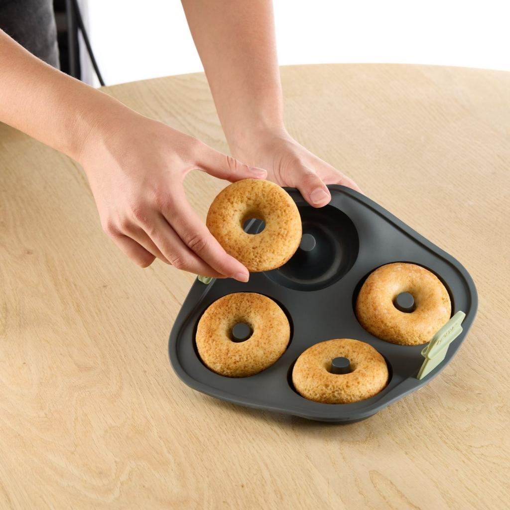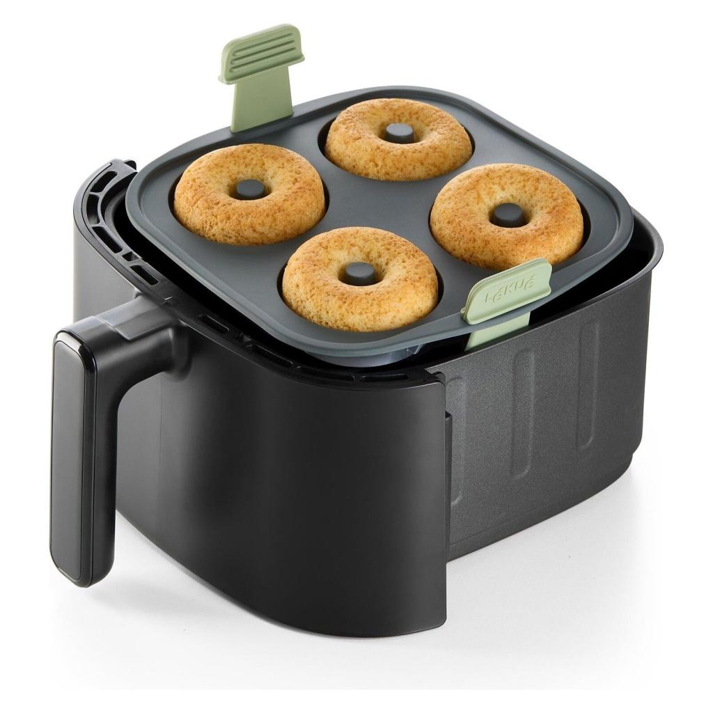 - Donuts form Lékué muliggør nem og hurtig tilberedning af hjemmelavede donuts direkte i en varmluftfrituregryde uden at skulle stege i olie.