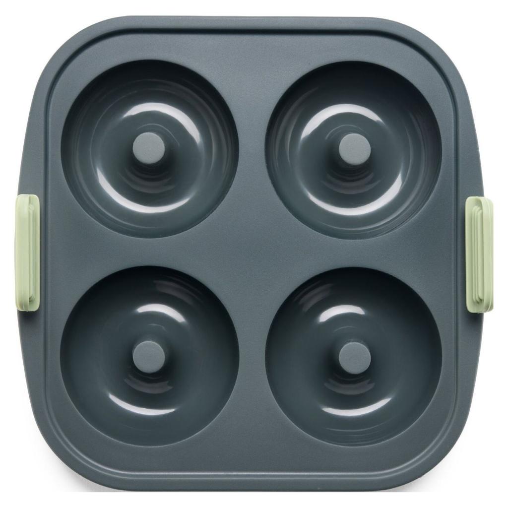- Fremstillet af 100 % platinsilikone med en non-stick overflade, der gør det nemt at fjerne bagte donuts uden at beskadige formen.