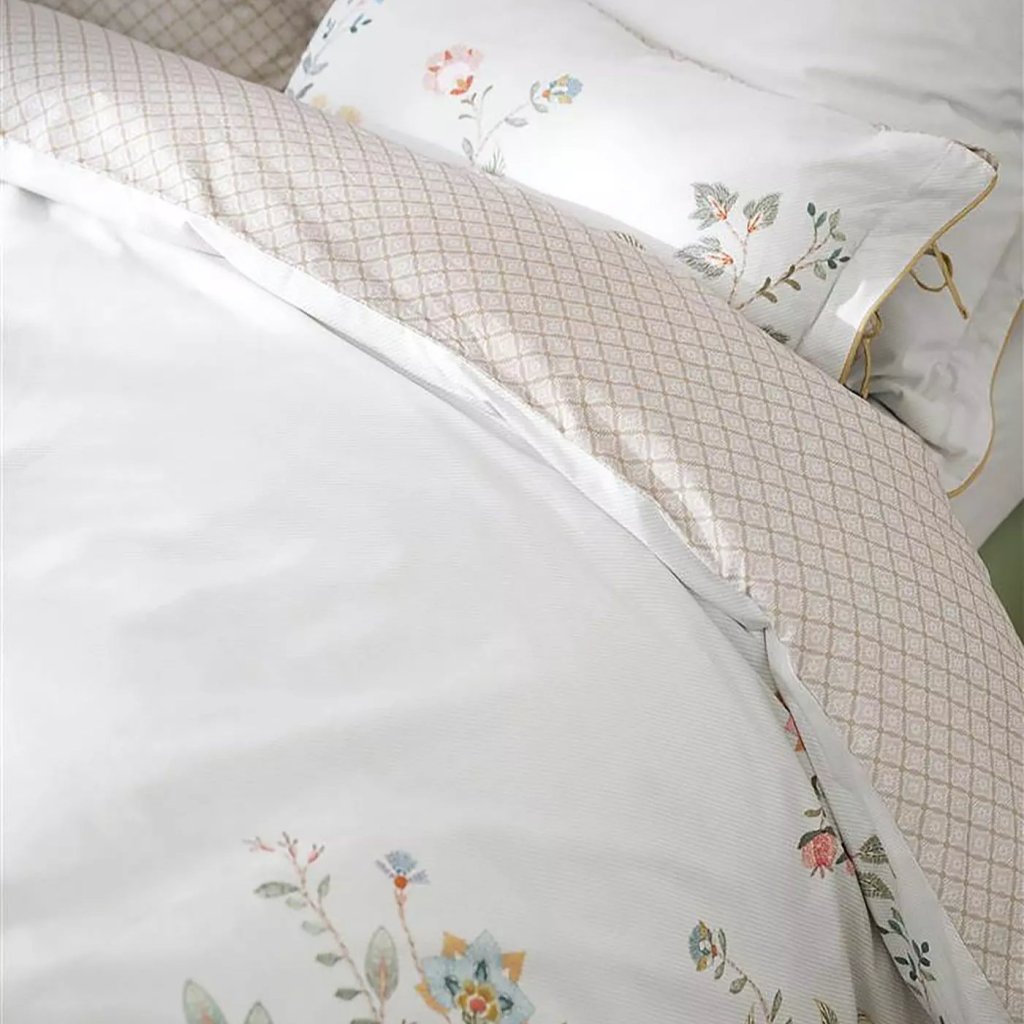 Enkelt sengetøj CAMPO DE FLORES 140 x 200 cm, hvid, bomuldspercale, Pip Studio