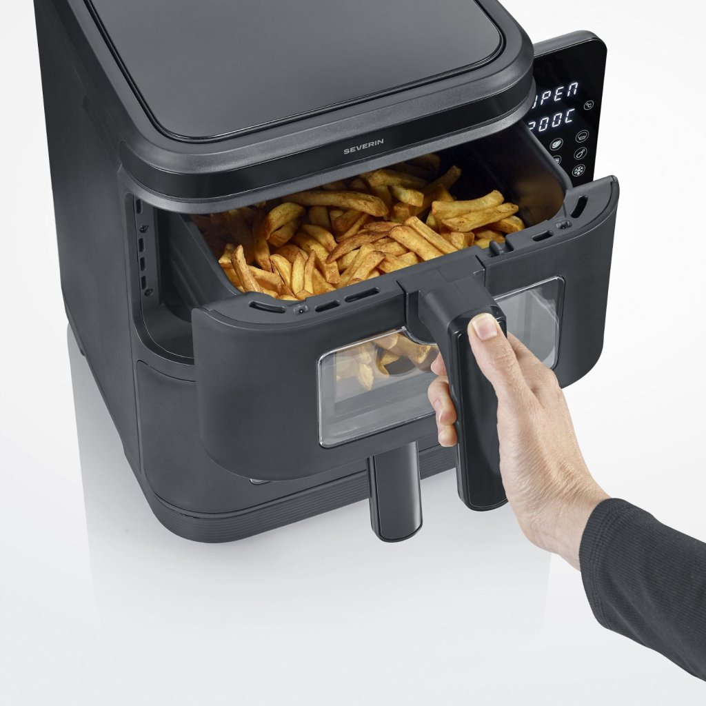 - frituregryde Severin FR 2468 med dobbelt layout tilbyder sund oliefri madlavning i et kompakt og kraftfuldt design