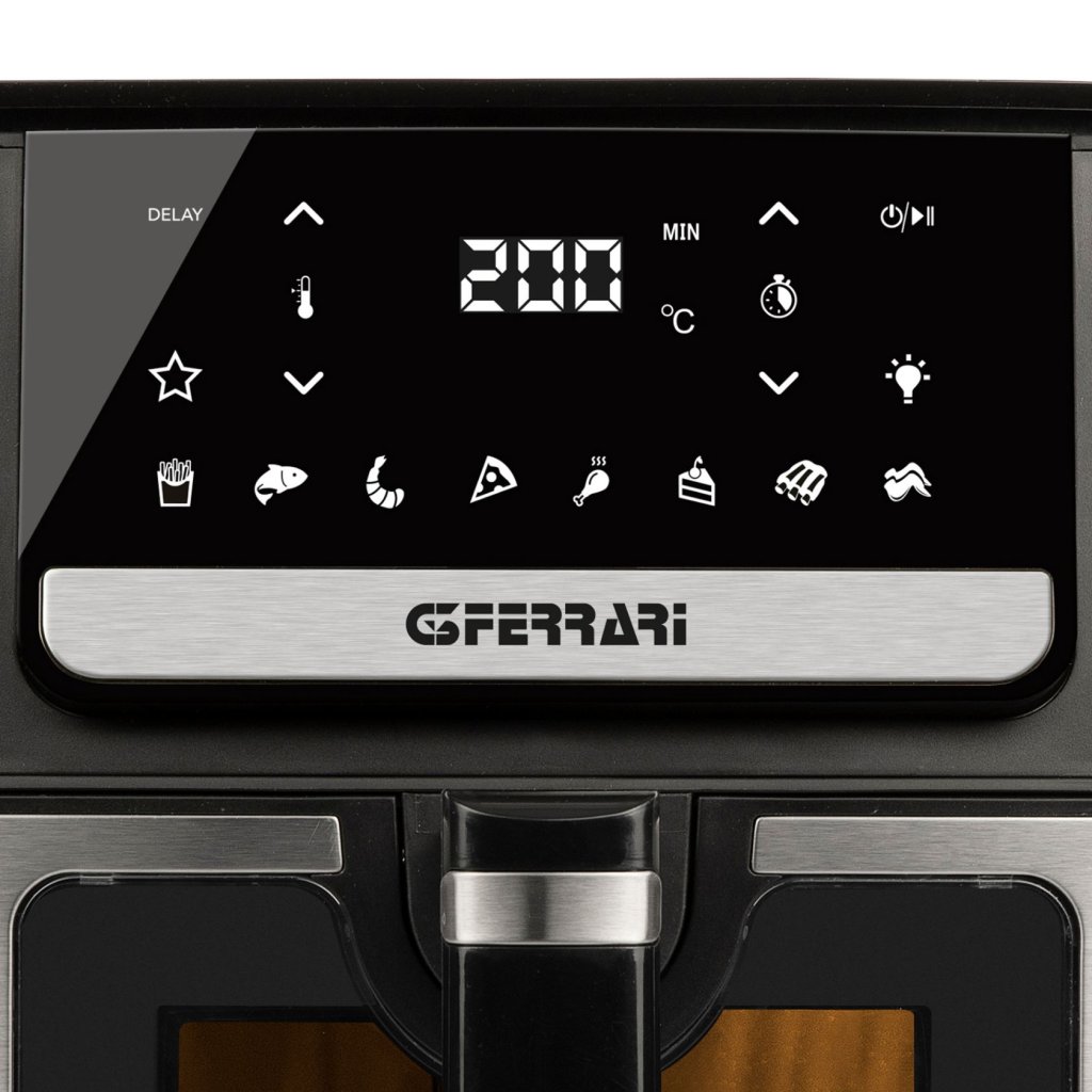 - udstyret med 8 automatiske programmer (pommes frites, fisk, skaldyr, pizza, kyllingelår, kage, kød, kyllingevinger)