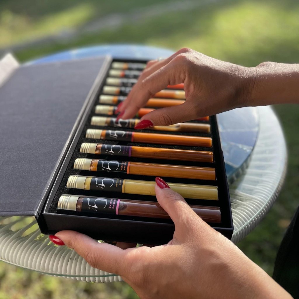 - Sættet indeholder både milde og meget stærke varianter af saucer, så der er noget for både begyndere og erfarne chilielskere.
