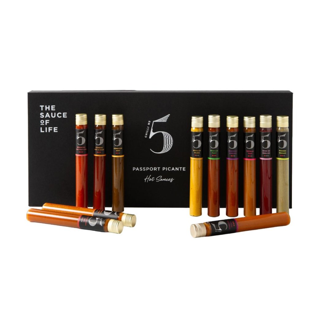 - Chilisauce-smagningsættet PASSPORT PICANTÉ er en gaveæske med tolv glasrør fyldt med stærke saucer fra hele verden, der vil glæde enhver elsker af krydrede smagsoplevelser.