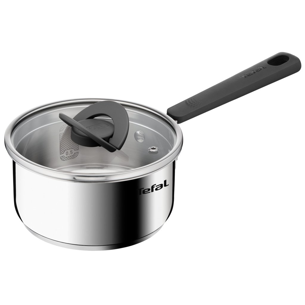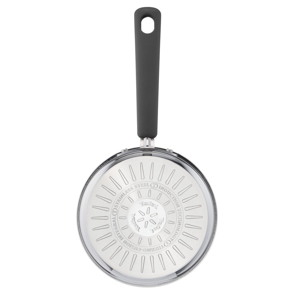 - panden har en holdbar (holder op til 2x længere end standard Tefal) non-stick titaniumoverflade fri for PFOA, cadmium og bly til stegning og sautering med lidt eller intet fedtstof