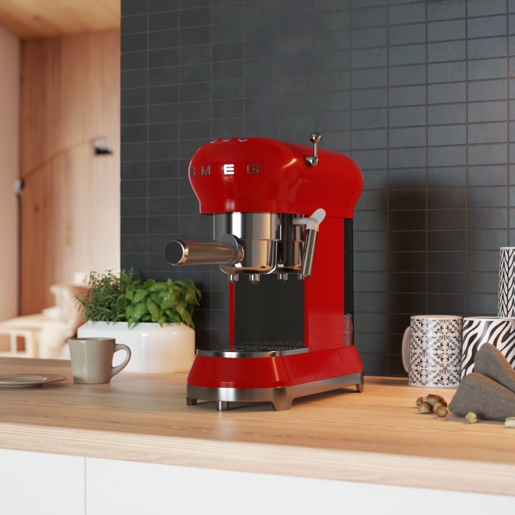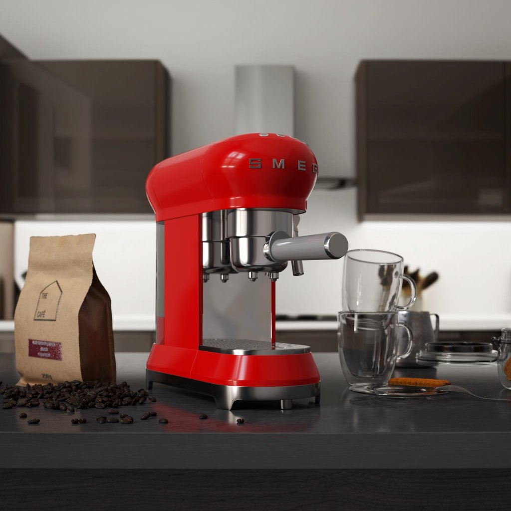 Halvautomatisk kaffemaskine ECF01RDEU, rød, Smeg
