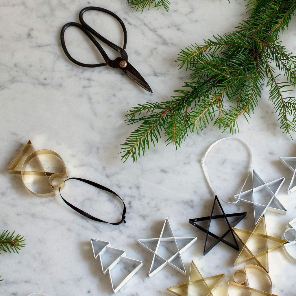 - enkelt og geometrisk design af traditionelle julesymboler passer ind i ethvert miljø