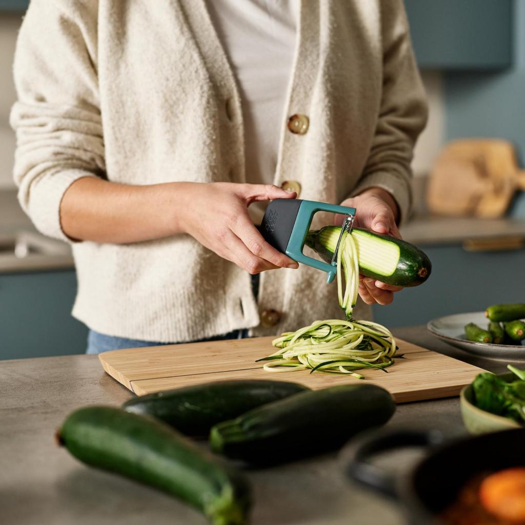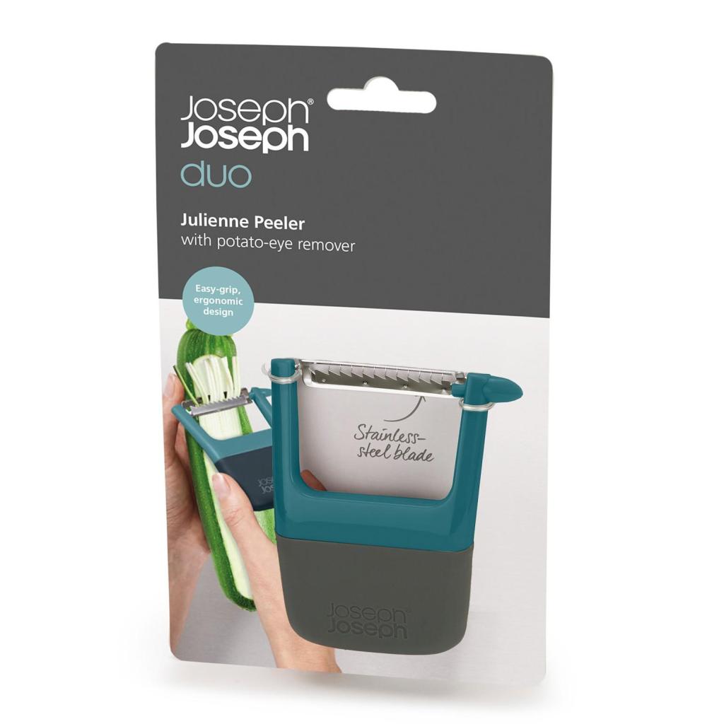 - Julienne-skrælleren Joseph Joseph DUO OPAL er ideel til tilberedning af fine grøntsagsstrimler, f.eks. fra gulerødder, selleri, squash eller radiser.
