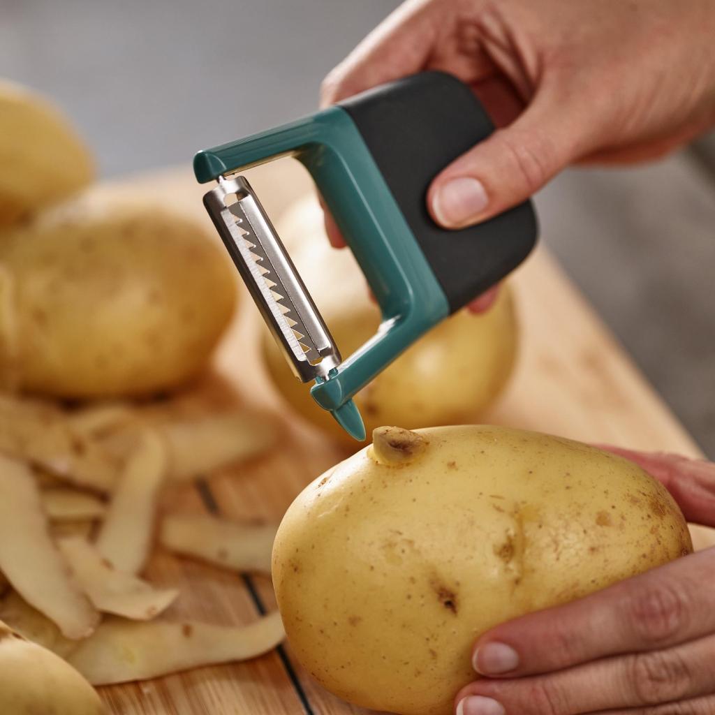 - Skrælleren er velegnet til daglig brug ved tilberedning af sunde grøntsagsretter.