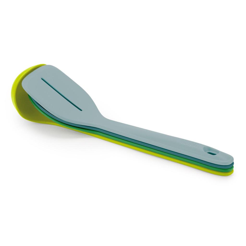 - Joseph Joseph DUO OPAL-sættet med fire køkkenredskaber til skuffen tilbyder en praktisk og pladsbesparende løsning til daglig madlavning i et moderne hjem.