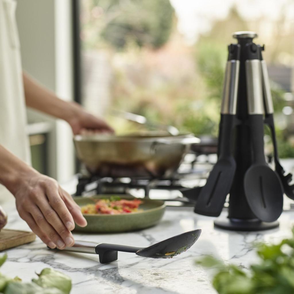 - Hvert redskab er designet til en specifik opgave, hvilket gør det nemmere at blande, vende, servere eller øse forskellige retter.