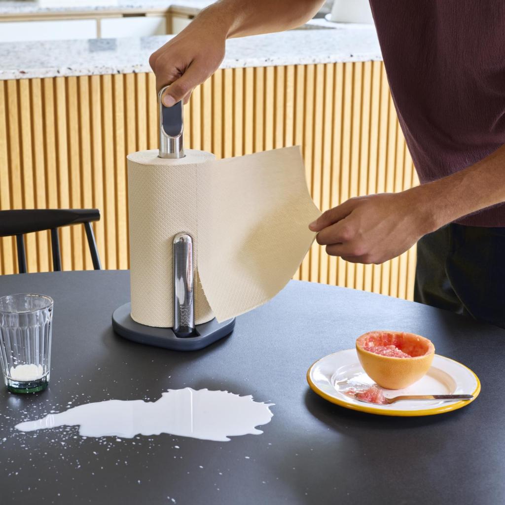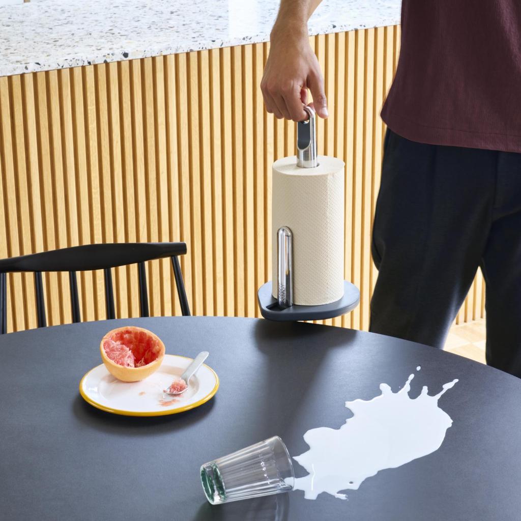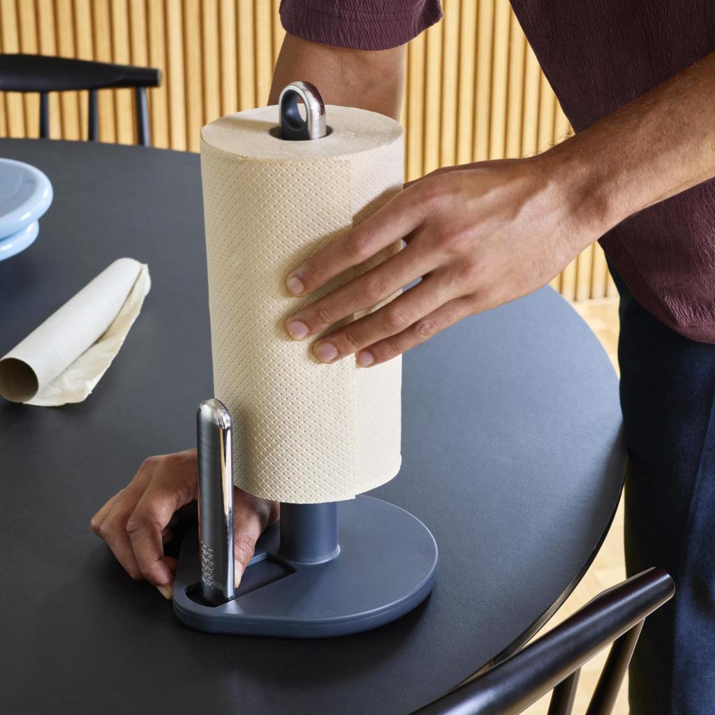- Køkkenrulleholderen Joseph Joseph HOLD er en praktisk hjælper, der gør den daglige brug af papirruller nemmere under madlavning og rengøring.