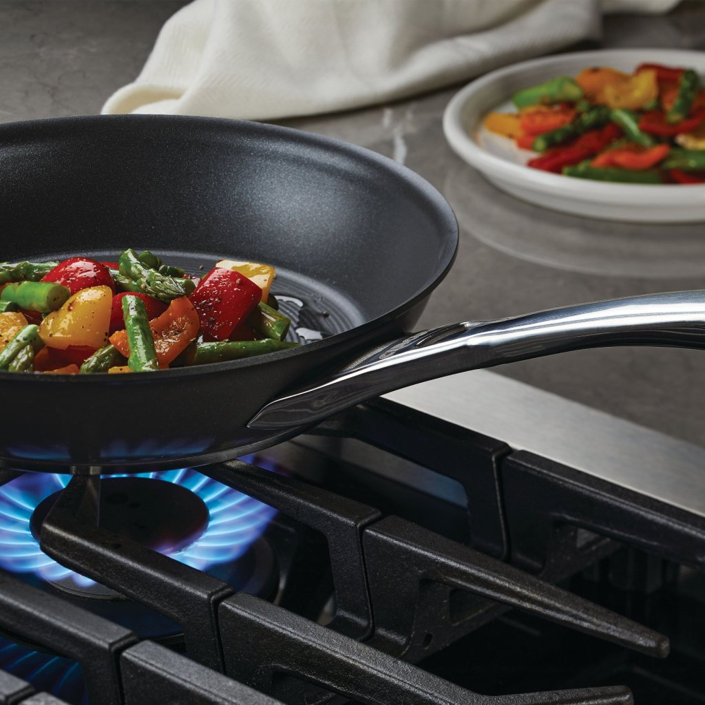 - slanke, robuste og ergonomisk formede håndtag i poleret rustfrit stål giver et behageligt greb og forbliver kølige, selv under langvarig madlavning