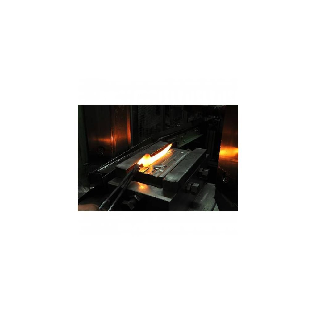 Til produktionen af knivene blev der brugt specielt knivstål af høj kvalitet med en hårdhed på ca. 55 - 57 HRC ifølge Rockwell, som er finkornet, hårdt og mindre modtageligt for korrosion. Takket være det flade snit er det desuden meget modstandsdygtigt over for skader eller brud, samtidig med at det har en fremragende skæreevne. Dens egenskaber forbedres yderligere til knivfremstilling ved smedning, som homogeniserer og fortætter dens struktur.