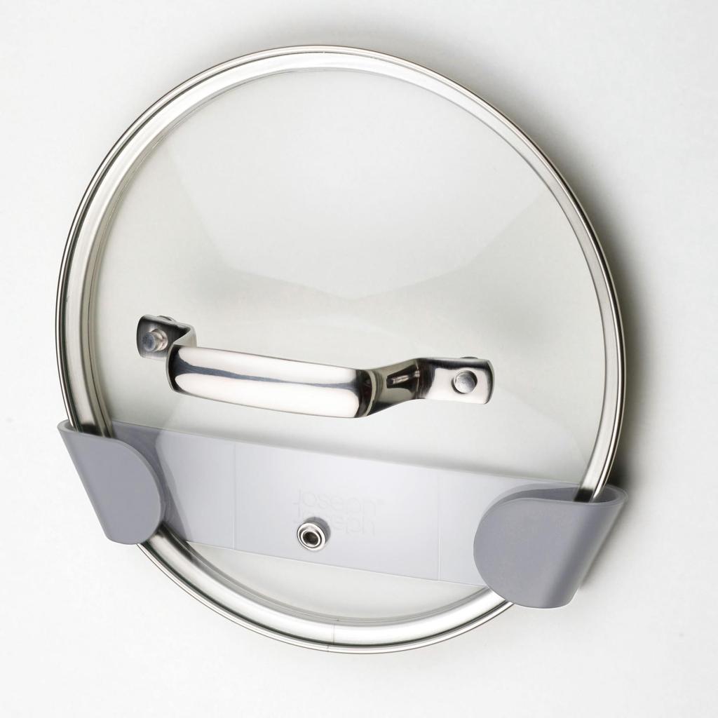 - Sæt med 3 selvklæbende lågkoppeholdere Joseph Joseph DUO er en praktisk løsning til overskuelig og pladsbesparende opbevaring af låg inde i køkkenskabe eller skuffer.