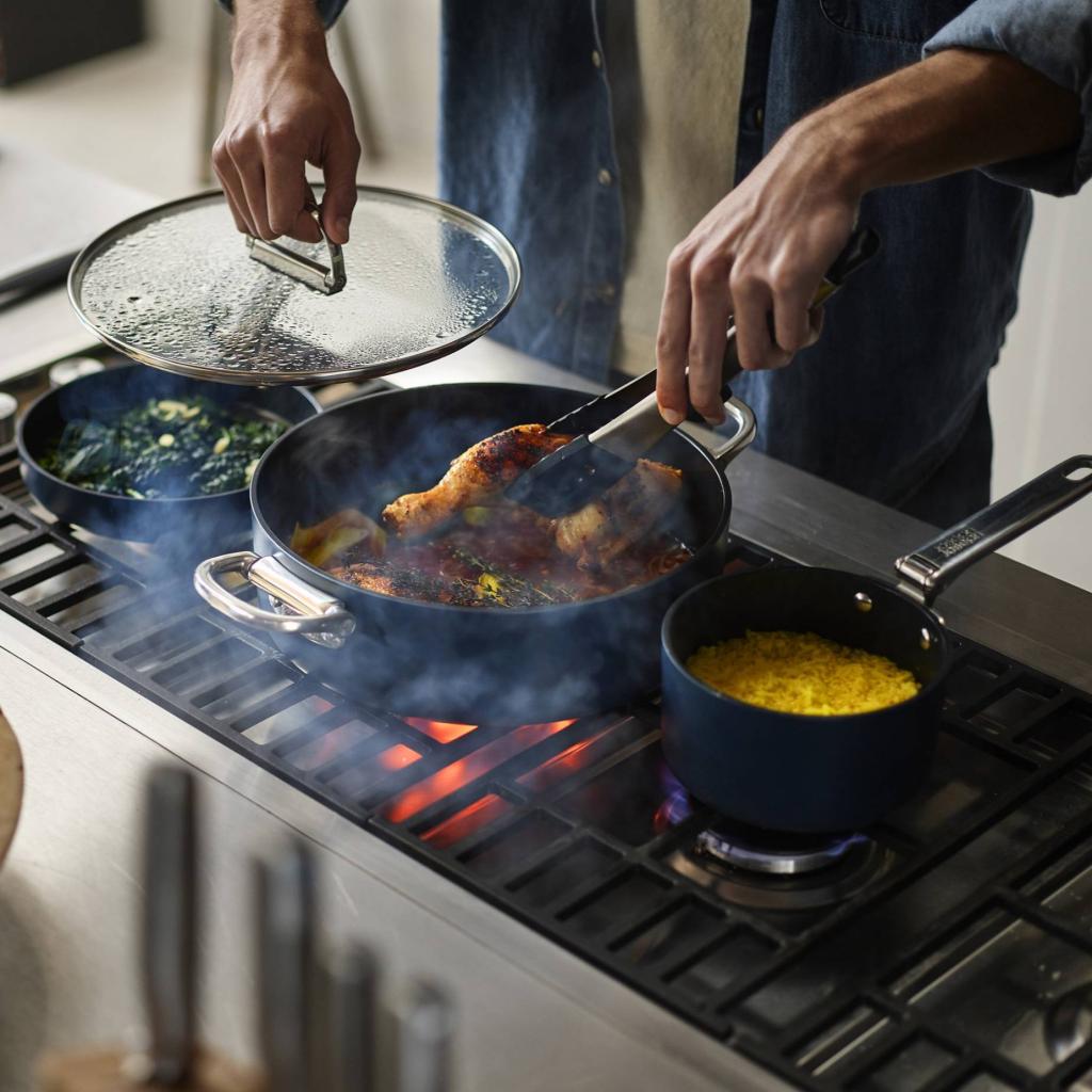 - Overfladen er giftfri og indeholder ikke PTFE, PFAS, PFOA, bly eller cadmium, og opfylder derfor høje krav til sundhedsmæssig sikkerhed.