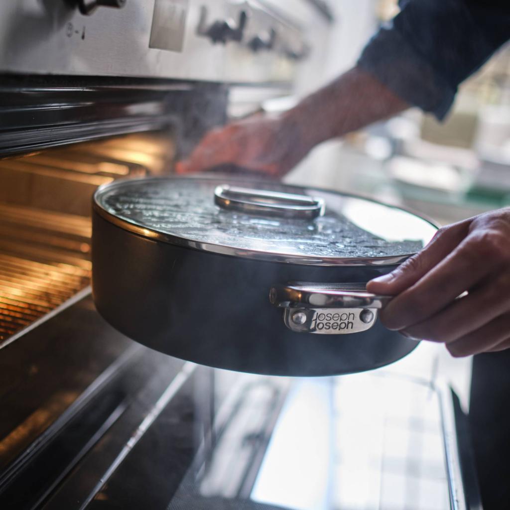 - Lav gryde SPACE med en diameter på 28 cm og låg er ideel til tilberedning af måltider fra én gryde, langtidsstegning, stuvning og bagning.