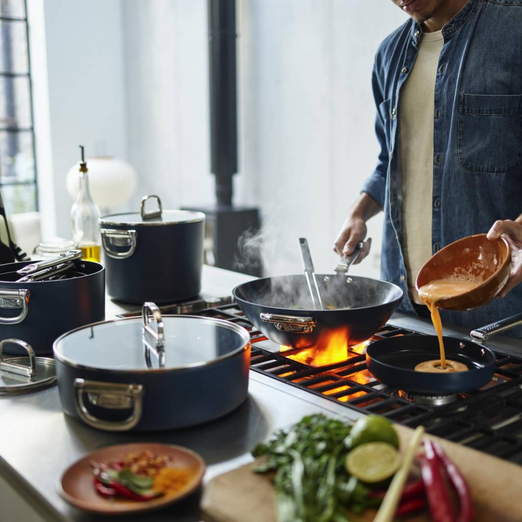 - Materiale: aluminum, non-stick keramisk overflade fri for PTFE, PFAS, PFOA, bly og cadmium, rustfrit stål (håndtag)