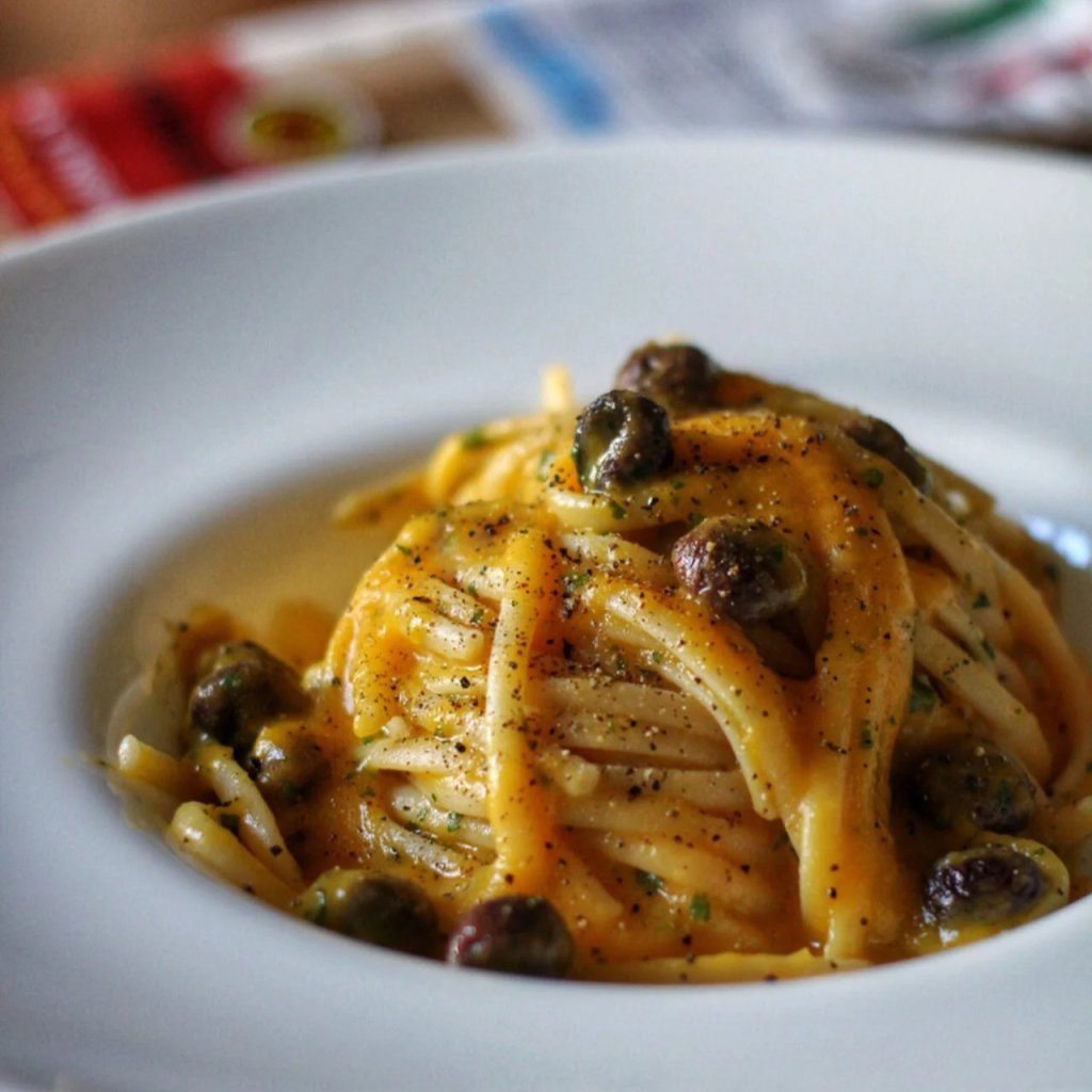 - Pastaen trækkes gennem en bronzematrice, så overfladen forbliver lidt ru, og saucen fanger alle ujævnheder for at give en mere udtalt smag.