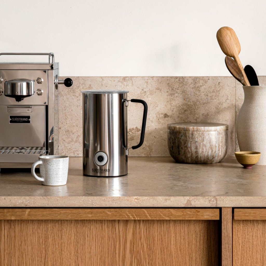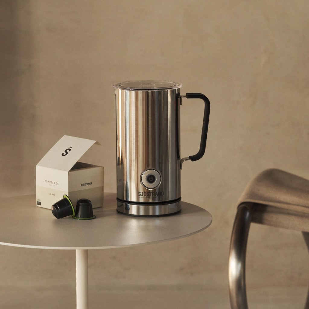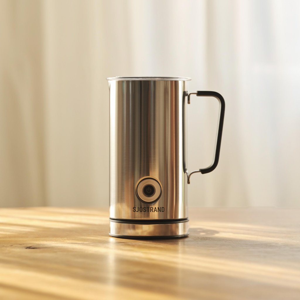 - Mælkeskummer Sjöstrand giver dig mulighed for at fremtrylle perfekt glat og luftigt skum frem på få sekunder, uanset om du tilbereder cappuccino, latte, macchiato eller varm chokolade.