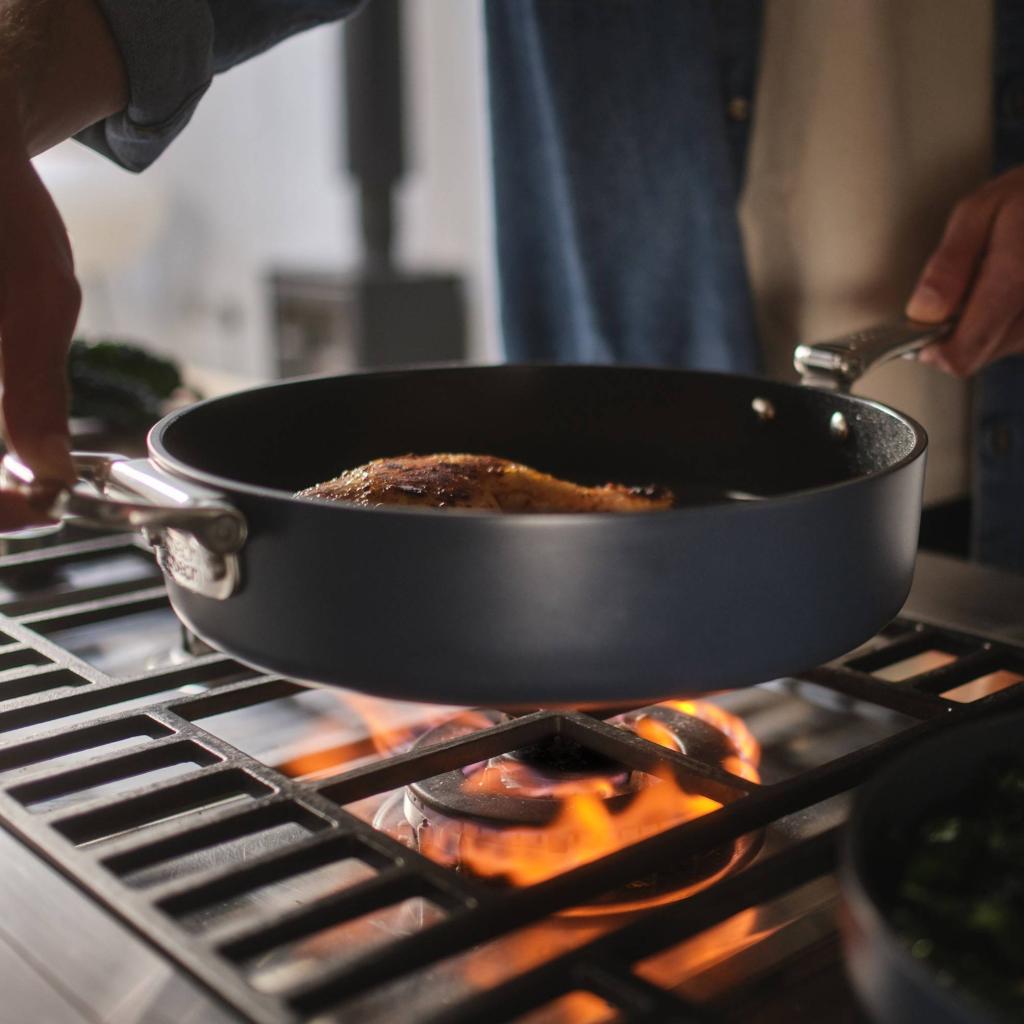 - Panden er velegnet til alle typer komfurer og kogeplader, inklusive induktion, og tilpasser sig derfor nemt enhver køkkentype.