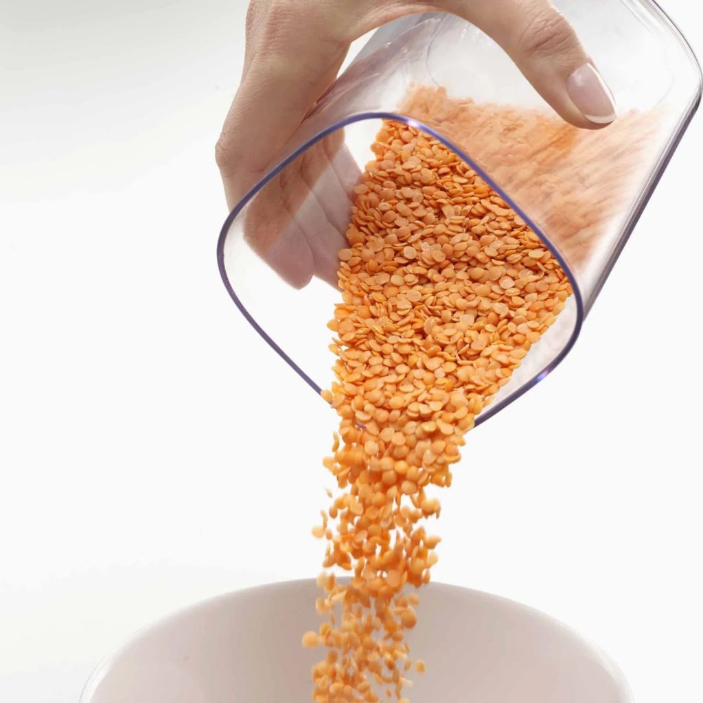 - sæt med 5 plastbeholdere til tørre råvarer