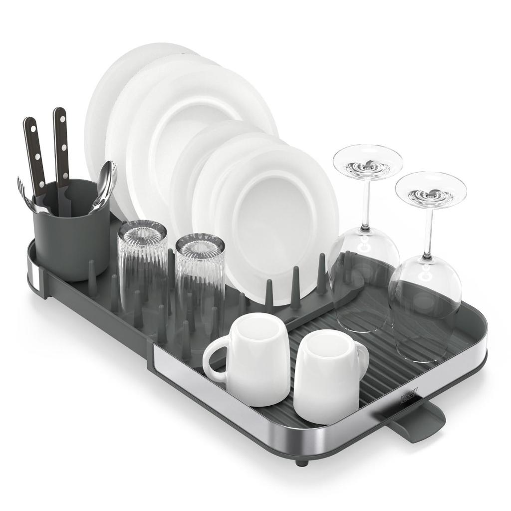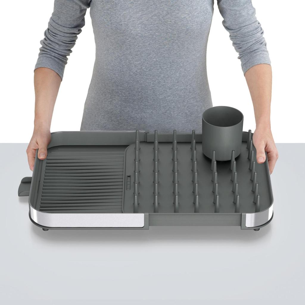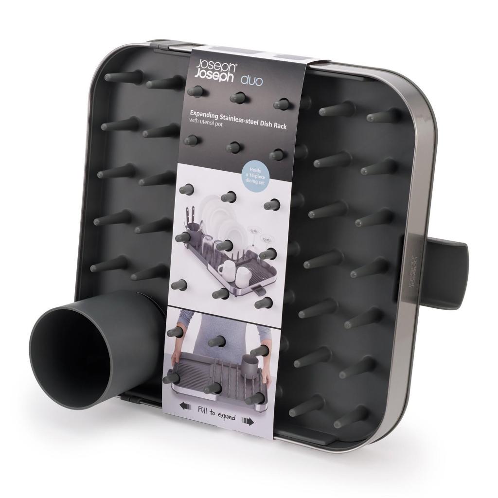 - Joseph Joseph DUO udtrækkeligt afløbsstativ er en praktisk hjælper til daglig tørring af service og giver en bekvem tilpasning af pladsen efter dit køkkens aktuelle behov.