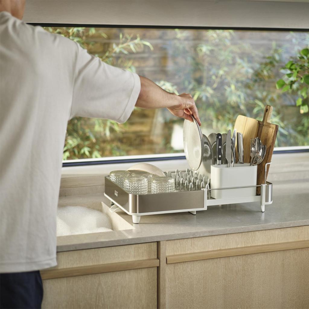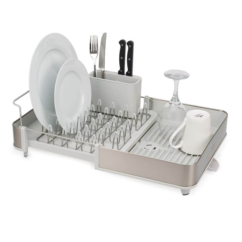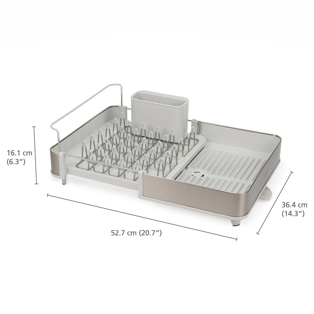- Opvaskebræt Joseph Joseph EXTEND tilbyder en fleksibel løsning til tørring af service takket være dets udvidelige design, der tilpasser sig din køkkens aktuelle behov.