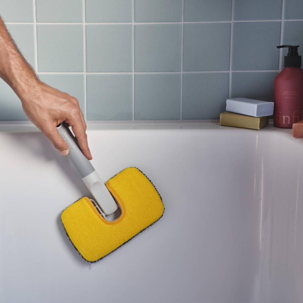 - Joseph Joseph CLEANTECH overfladebørste er en alsidig hjælper designet til grundig og effektiv rengøring af forskellige badeværelses- og køkkenoverflader.