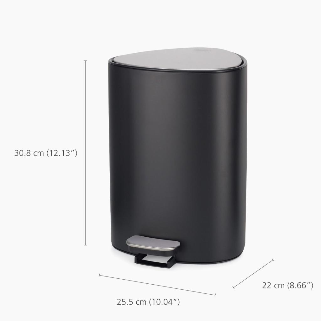 - Pedal skraldespand EASYSTORE på 5 liter i elegant sort er designet til at passe perfekt ind i et hjørne af rummet og spare værdifuld plads.