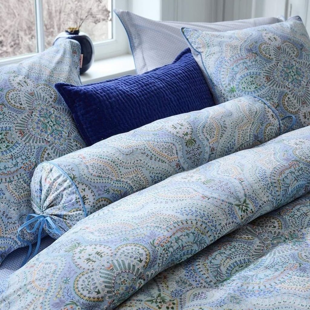 - Lyseblå dekorativ cylindrisk hovedpude Pip Studio MOON FLOWER er et elegant tilbehør, der bringer stil og komfort til interiøret