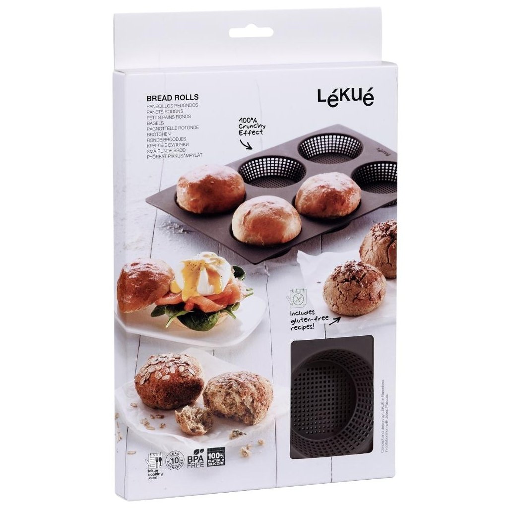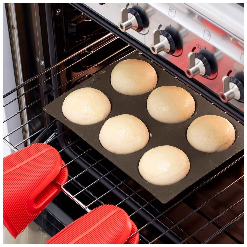 - en silikoneform til seks rundstykker, der skal bages på én gang