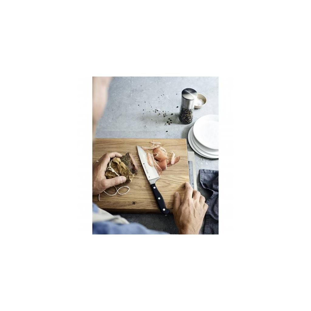 Santoku Spitzenklasse Plus er en af de asiatiske knive. Den har et bredt og frem for alt skarpt blad. Denne altmuligmand fra det asiatiske køkken kan bruges på tre måder: til tilberedning af kød, fisk og grøntsager. Du vil sætte pris på Santoku-knivens fremragende blad, f.eks. når du skærer tomater, hvis form og tekstur ikke ændrer sig under udskæringen.