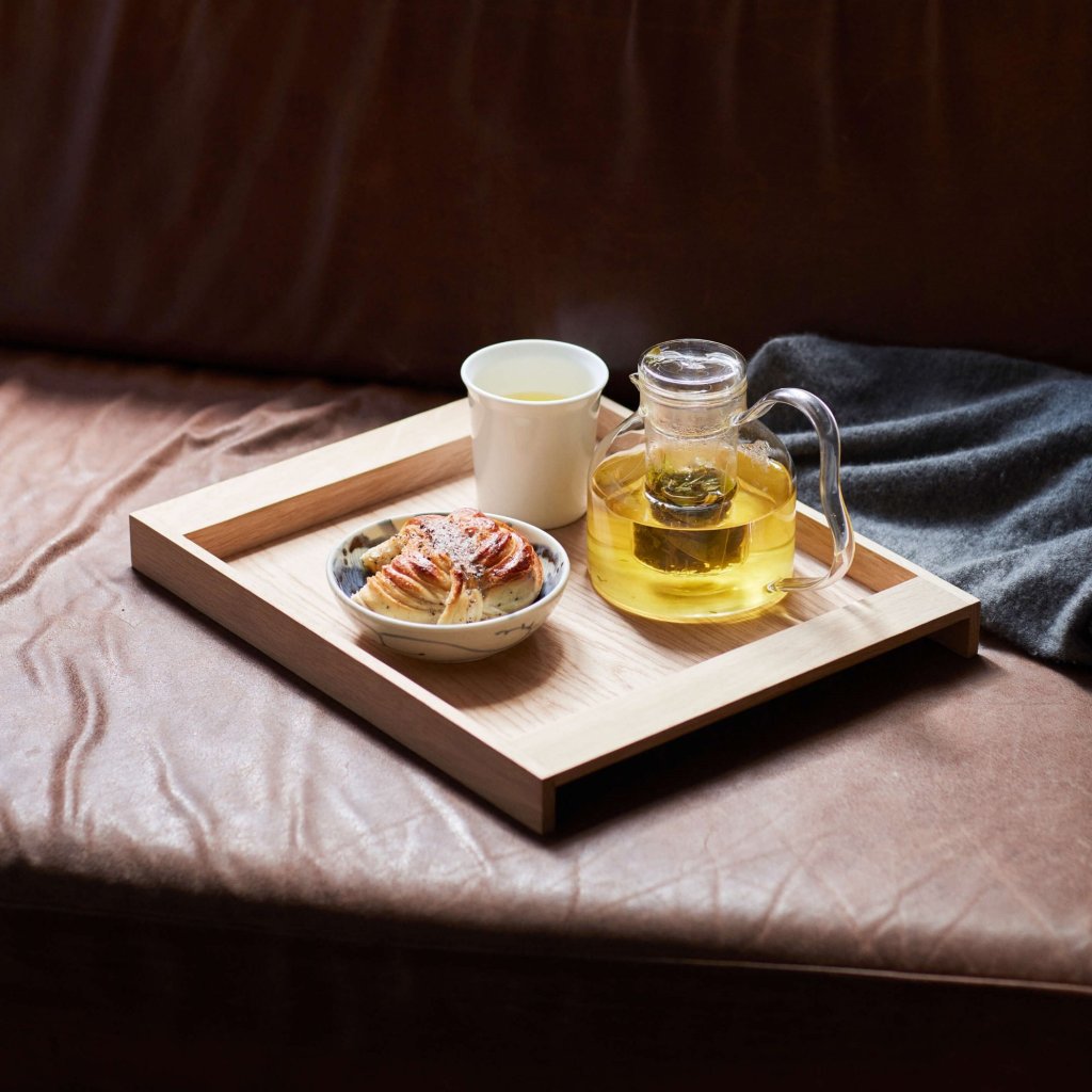 - Moderne serveringsbakke designet af den japanske designer Teruhiro Yanagihara for mærket Fritz Hansen i japansk-skandinavisk æstetiks ånd