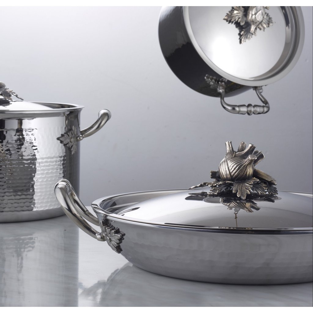 - luksuriøs serveringspande i smedejern og rustfrit stål med låg til de mest krævende professionelle og amatørkokke