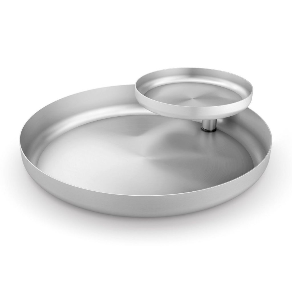 - den øverste skål kan klikkes på og drejes, hvilket gør det nemt at få adgang til de serverede lækkerier fra alle sider