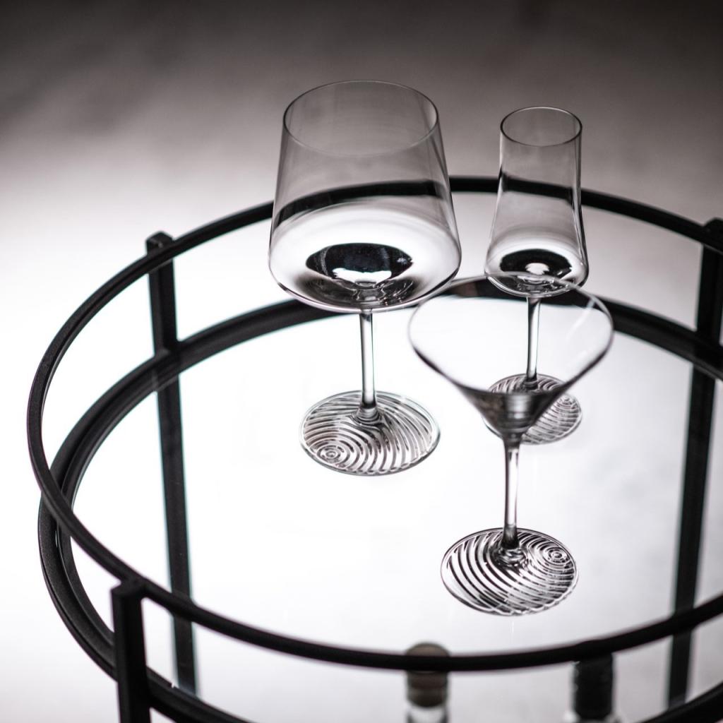 - glassets slanke silhuet og den høje stilk giver et elegant indtryk og bidrager til et behageligt greb under smagningen