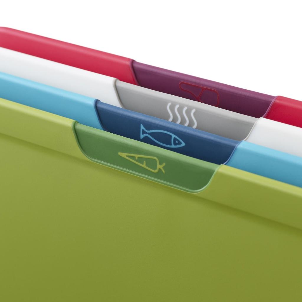 - Takket være klar farvekodning og tydelige symboler kan du nemt vælge det rigtige skærebræt, selv under hektisk madlavning til familiens frokost eller en festmiddag.