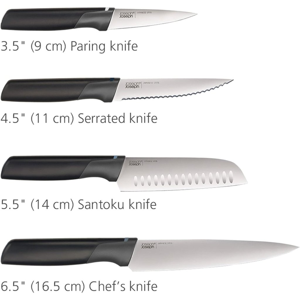 - knivene har klinger af japansk rustfrit stål af høj kvalitet og ergonomiske plasthåndtag