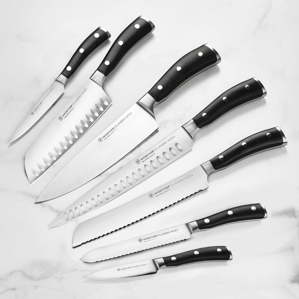 - Kniven er en del af serien CLASSIC IKON fra mærket Wüsthof, som er kendt for sin kvalitet og pålidelighed inden for køkkenknive.