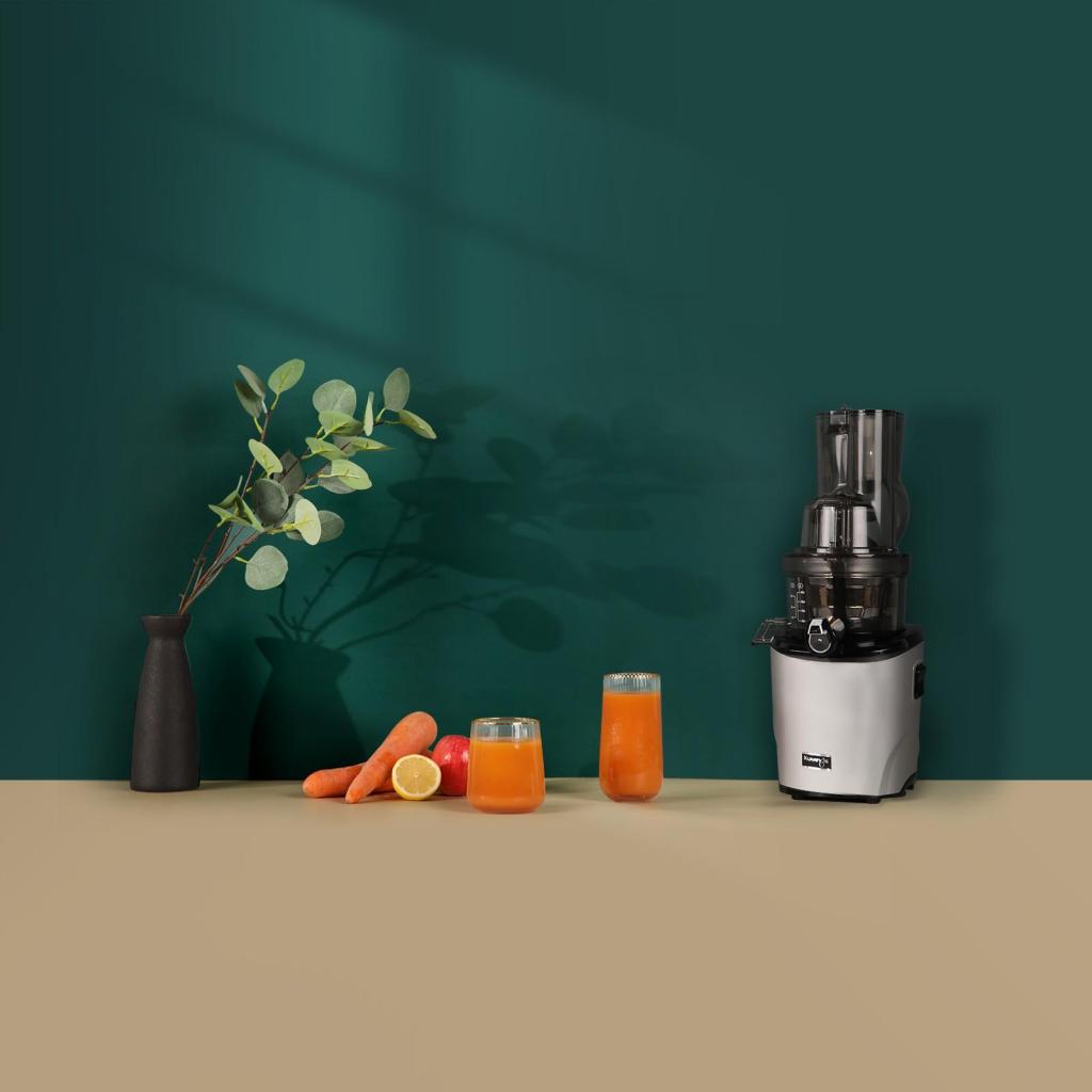 - Den forbedrede pressemekanisme producerer op til 15 % glattere juice, så drikken føles glat og meget behagelig ved hver slurk.