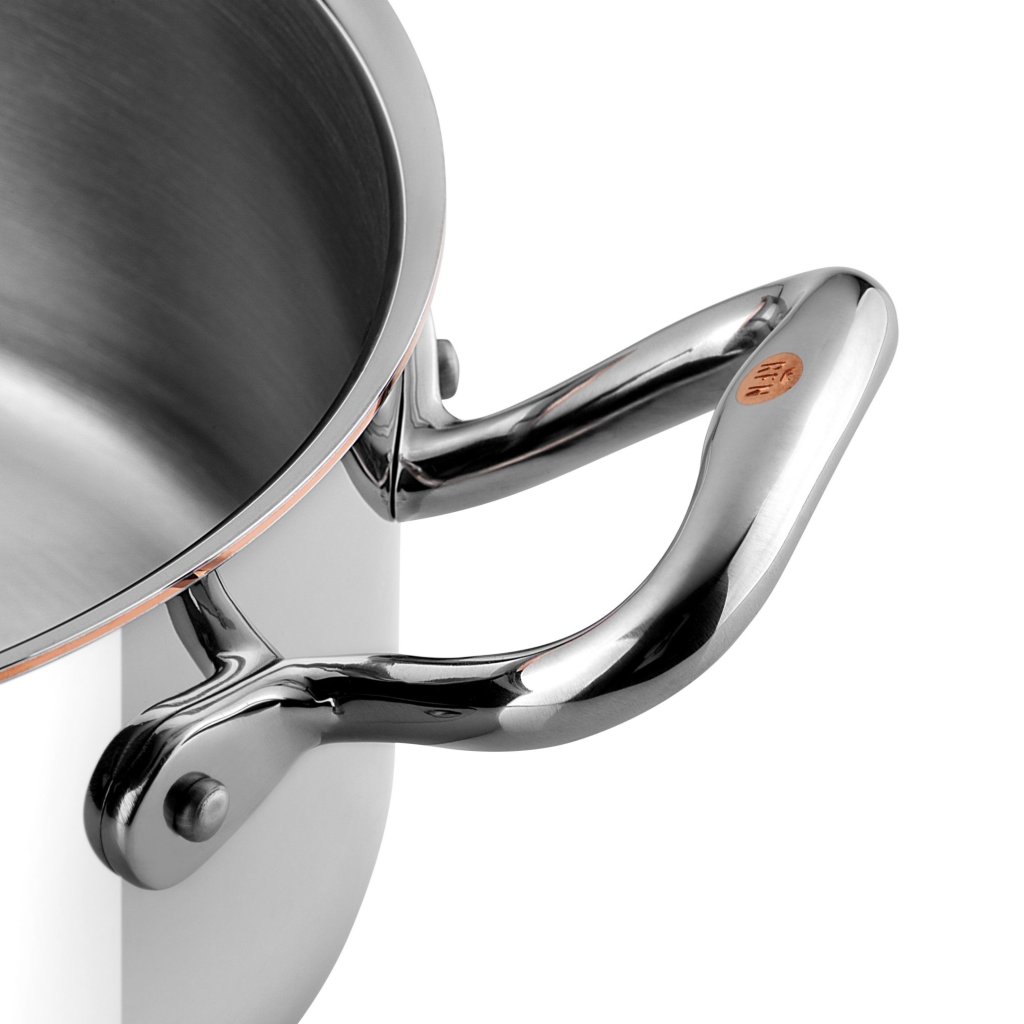 - fremstillet af kobber og belagt med højkvalitets rustfrit stål i spejlblank for maksimal styrke, praktisk anvendelighed og nem vedligeholdelse