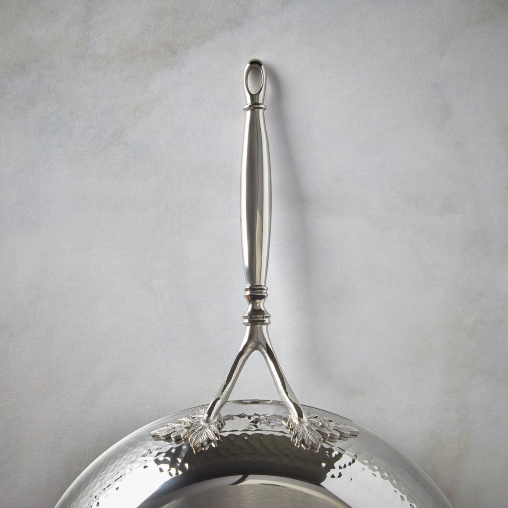 - håndtaget i rustfrit stål er dekoreret med fine blade og fastgjort med holdbare nitter i rustfrit stål