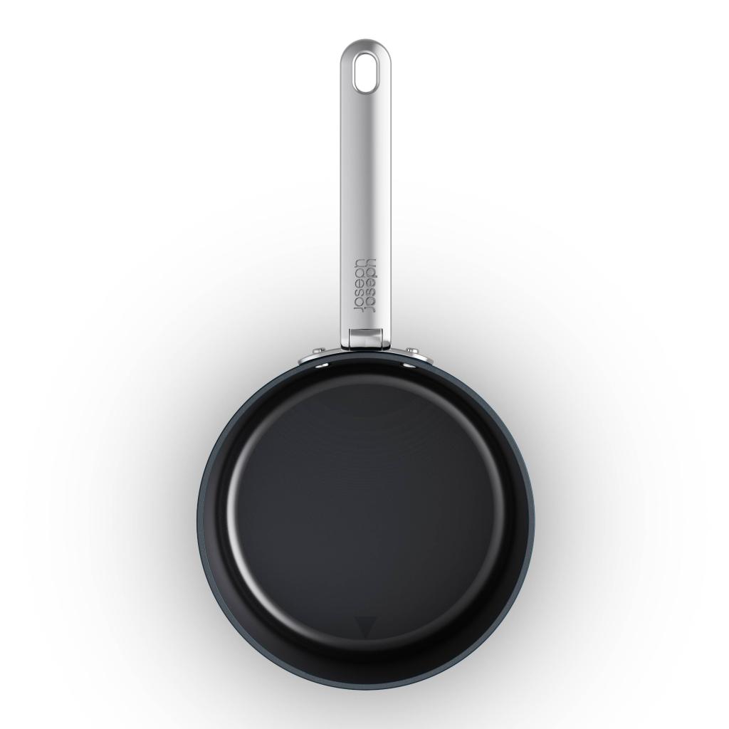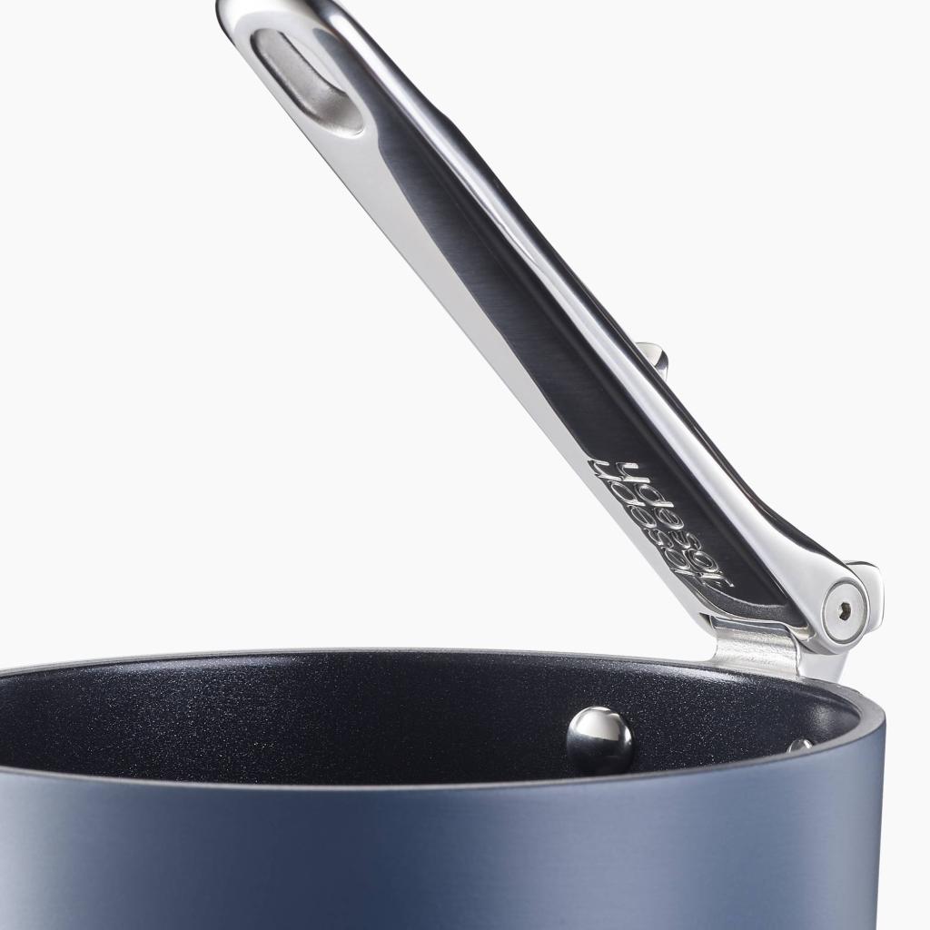 - Ved at folde håndtaget kan der spares op til 50 % mere plads sammenlignet med almindelige Sovsegryder, hvilket gør den ideel til mindre køkkener og begrænsede rum.