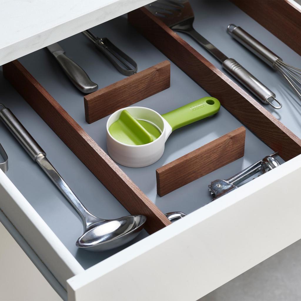 - Takket være de små dimensioner passer den nemt i en køkkenskuffe eller et mindre skab.