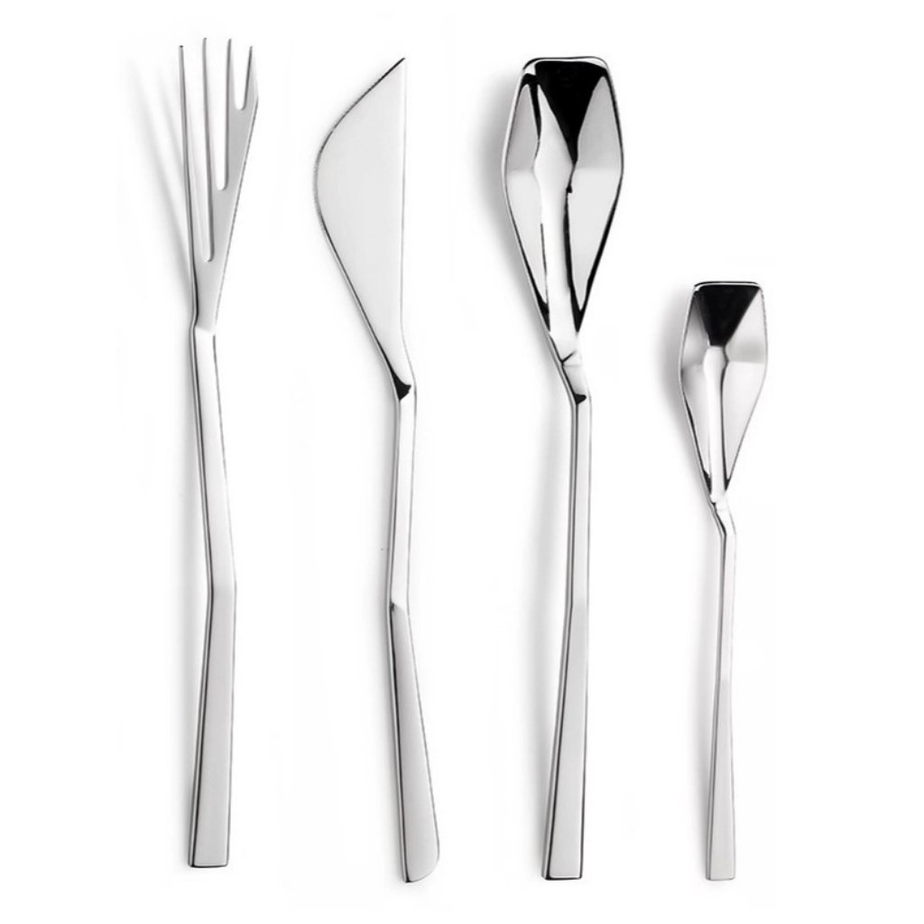 - sæt med 24 stk ALBERI D'INVERNO bestik fra Pintinox præsenterer et dristigt kunstnerisk spisekoncept med en karakteristisk æstetik