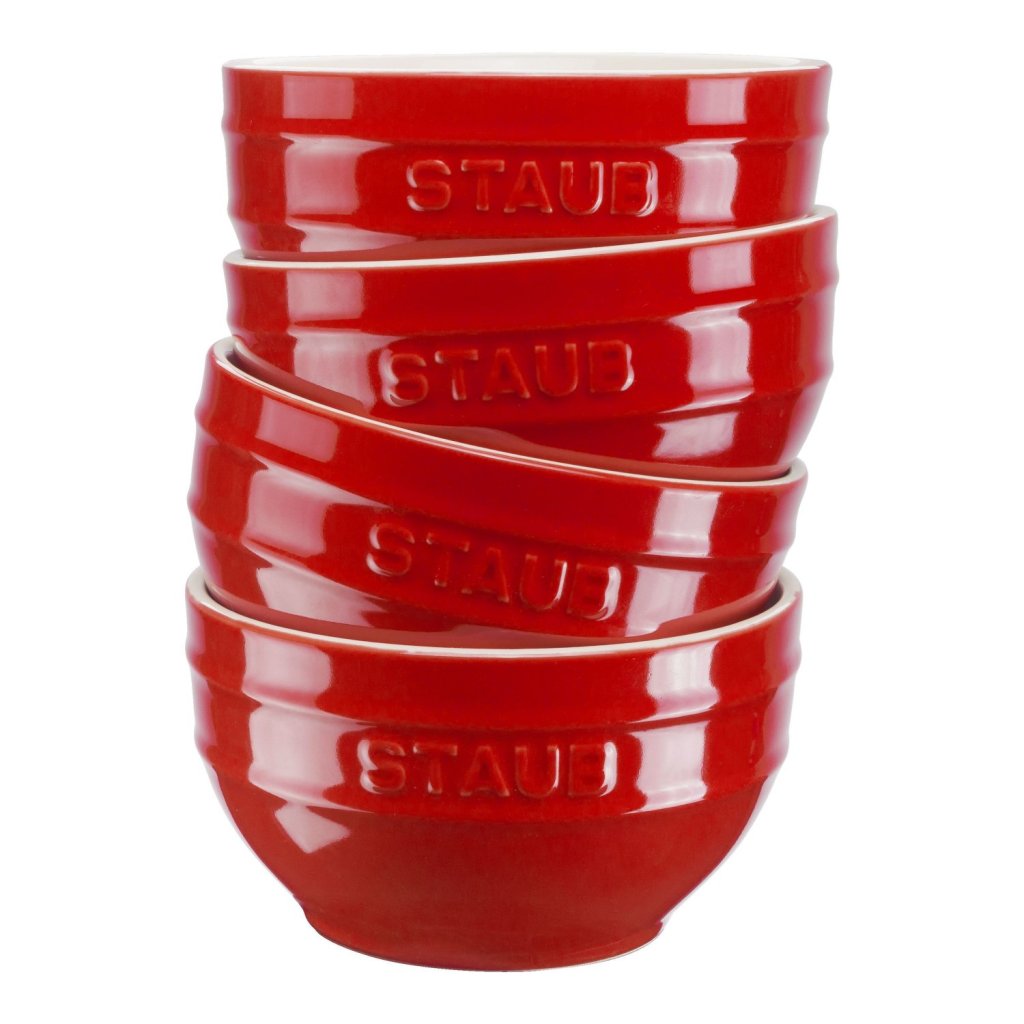 Spiseskål 700 ml, sæt med 4, rød, keramik, Staub